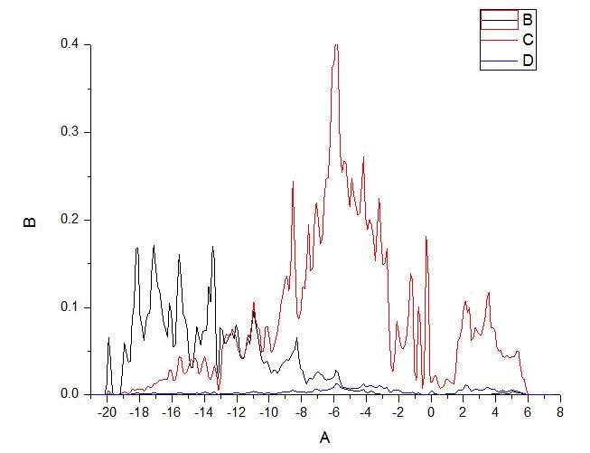 请高手指点下面的分波态密度是怎么画出来的?我计算的体系是52个原子,用vasp计算得到OUTCAR后,直接用split_dos.sh处理后得到DOS0,DOS1……DOS52,其中DOS0是总态密度,其余是分态密度,但是画出来的图完全不像下面这种情况,所以请高手指教,小弟感激不尽!![]() ![]() |