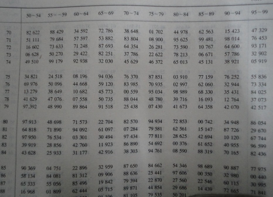 4,附件中的表格第一行50-54 55-59……,第一列70 71 72 73……是什么意思(前面还有但是我没传,表格的名称是10000个随机数字表)