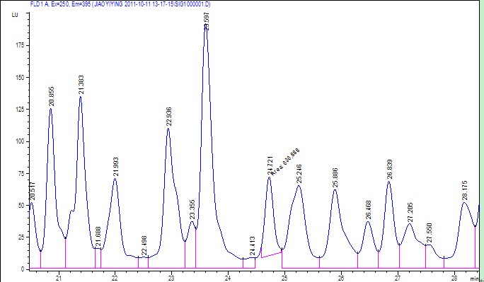 样品中在23.09min 有个峰 怀疑是目标物峰