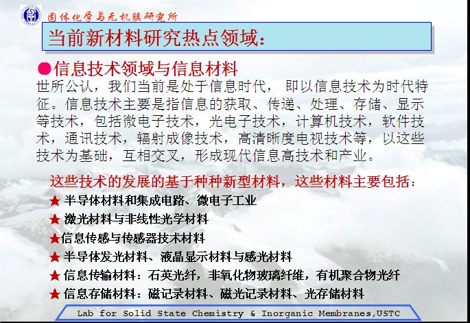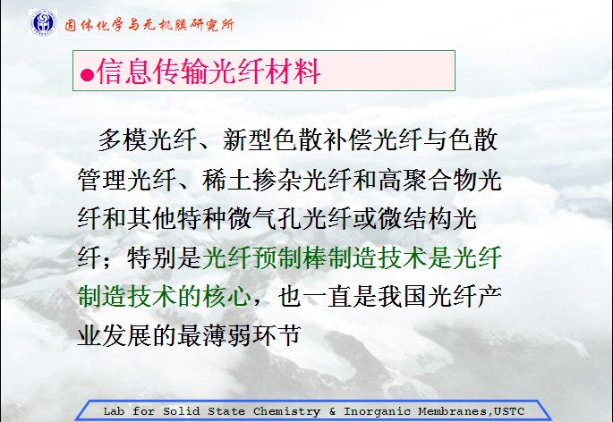 ★ 信息传输材料:石英光纤,非氧化物玻璃纤维,有机聚合物光纤