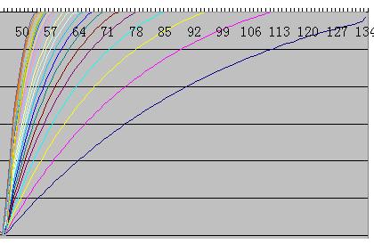 这组曲线符合什么函数呢,过一定点(t0,-A),之前我用这个函数:y=-a*(ln(t)-ln(tmax))/(ln(tmin)-ln(tmax)); 拟合出来曲线弧度不够,有点直。t是每条曲线下降的时间段,这里tmin就是起点t0,tmax就是每条曲线到达0的时间点。 请高手帮忙解决,会提示思路,感激不尽啊!另加分! |