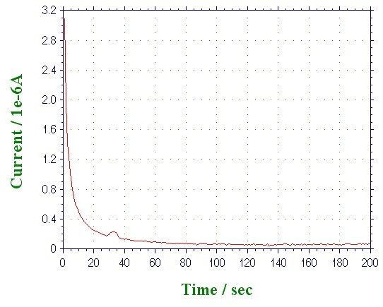 你这个图也不是一条0左右的直线啊,是正常的恒压扫描线啊,电流随时间减小啊!