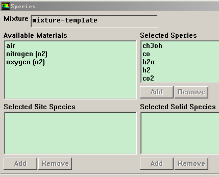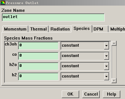 有两个问题需要请教: 1、在model-materials-mixture中添加反应物质时候会出现如下界面,各个表示什么意思,我想做甲醇水蒸气重整,如图这么添加对不对? 2、在后面的压力出口中,想设置各个组分的摩尔分数,但是只有部分组分,且只能设置质量分数。有些组分就没有显示,这是为什么,是不是在问题1中的设置方面有问题? 我的反应为 CH3OH+H2O =CO2+3H2 CO2+H2=CO+H2O 出口组分中为何没有CO2? [ 来自科研家族 化工工程工艺 ] |