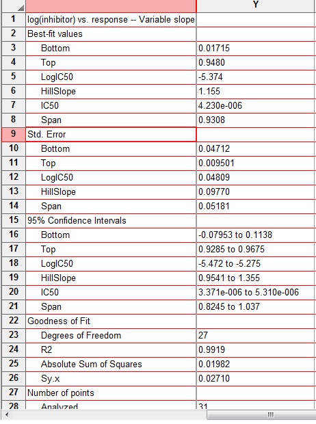 用graphpad prism计算IC50,如何输出IC50±S.E. , 在线等