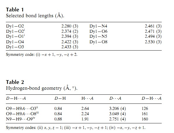 1.Acta E里都有关于金属键长和氢键的表格(不是supplementary materials里的信息,是第一页里出现的那个),如下图,请问在投的时候需要自己作这个表吗?