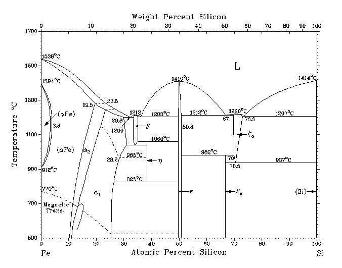 | 谁有Fe-Si二元相图啊,贴给我看看可以吗 |
