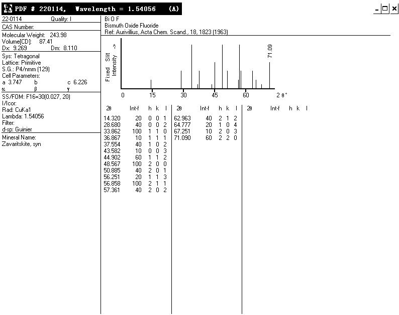 谁有BiOF和BiOBr的标准XRD谱图,求共享