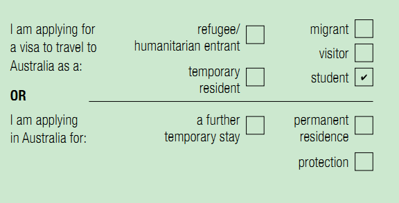 1221表格24题Give details of all post secondary qualifications (list your most recent experience first),如图1,http://edu.muchong.com/attachment/6a/a2/763988_1320232557_305.jpg各个空该怎么填写呢? 80表格第1题I am applying for a visa to travel to Australia as a:442表格中,我现在还是学生,442签证能不能写学生呢?有点像联合培养,就是拿不到对方的学位证。 如下图:http://edu.muchong.com/attachment/b0/e5/763988_1320232528_557.png |