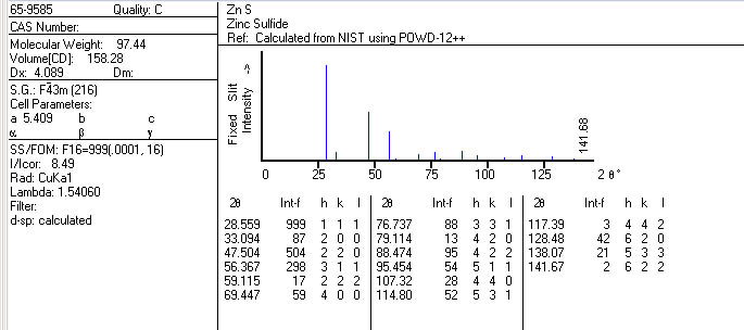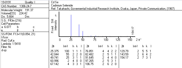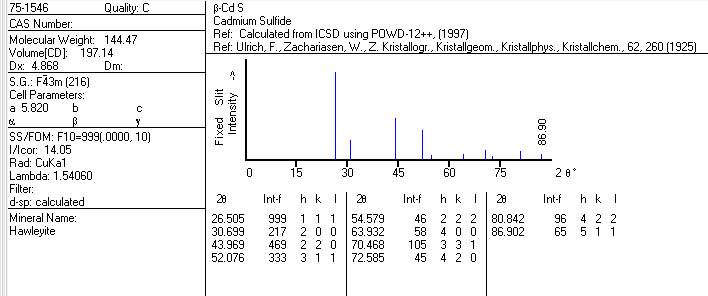 | 有没有哪位有cubic CdS, cubic CdSe 和cubic ZnS的XRD标准JCPDS卡片呀?万分感谢! |