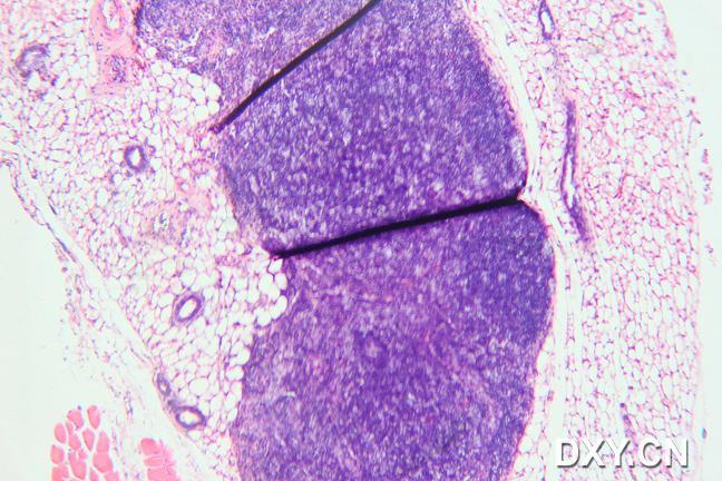我最近把未经过肌肉免疫小鼠和经过佐剂免疫小鼠的肌肉同时拿去做病理切片,其他组织无异常,不过观察到一个现象,就是正常小鼠有一蓝色区域是有黑线分割的,而且不知道这个蓝色区域是什么。而免疫了佐剂的小鼠其肌肉病理中的蓝色部位没有这种黑色的线。