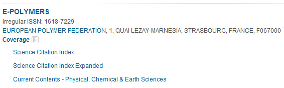 大家谁知道E-POLYMERS是SCI收录还是SCIE收录?