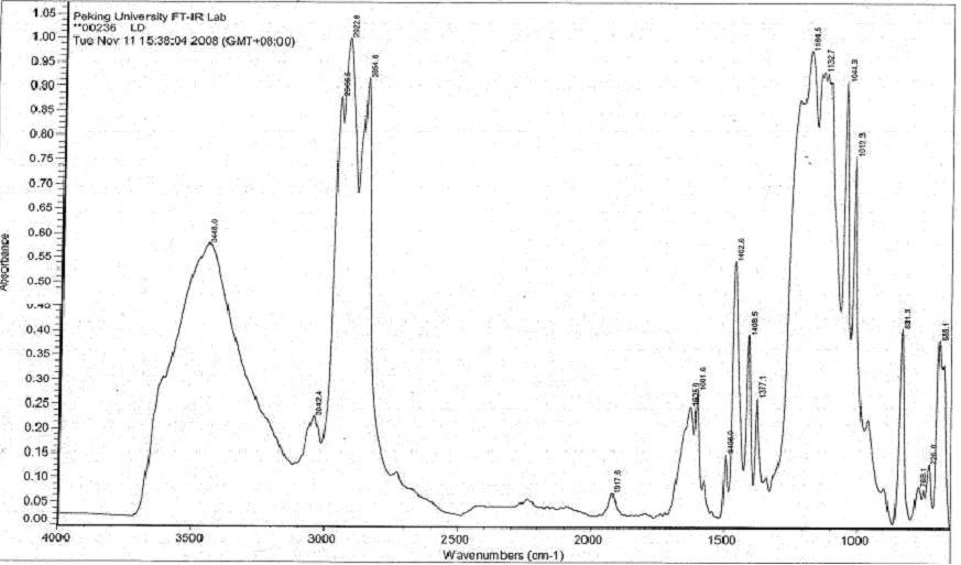请各位老师帮助分析下面的红外吸收譜图中各吸收峰的归属:是否有CF2、CH2、CH3、OH基团,还有什么别的基团。 (看不清图可以将鼠标放在图件上,按右键选复制,然后粘贴在word空白文件中,就可任意放大图件,注意设定页面为横向。) [ Last edited by chbliang on 2011-11-3 at 17:41 ] |