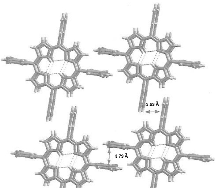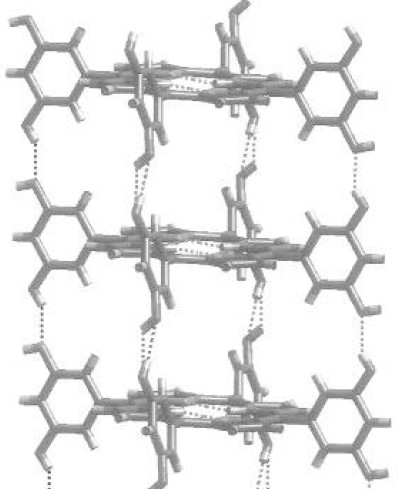 在文献中查询到这种通过分子间作用力构建起来的卟啉超分子结构的晶体参数,另外也有分子间的一些结构参数(如图1,2),比如间距等,在网站上找CIF文件,没有找到,现在应该如何去建模呢? 一个通过氢键连接的形成柱状的unit cell 邻近的卟啉unit cell 之间通过弱的范德华力连接 |