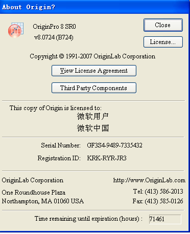 此破解支持SR4,请查看你的Origin Help:about Origin关于它的版本,然后到OriginLab的官方主页注册,下载相应补丁升级到SR4,注意不要 ...