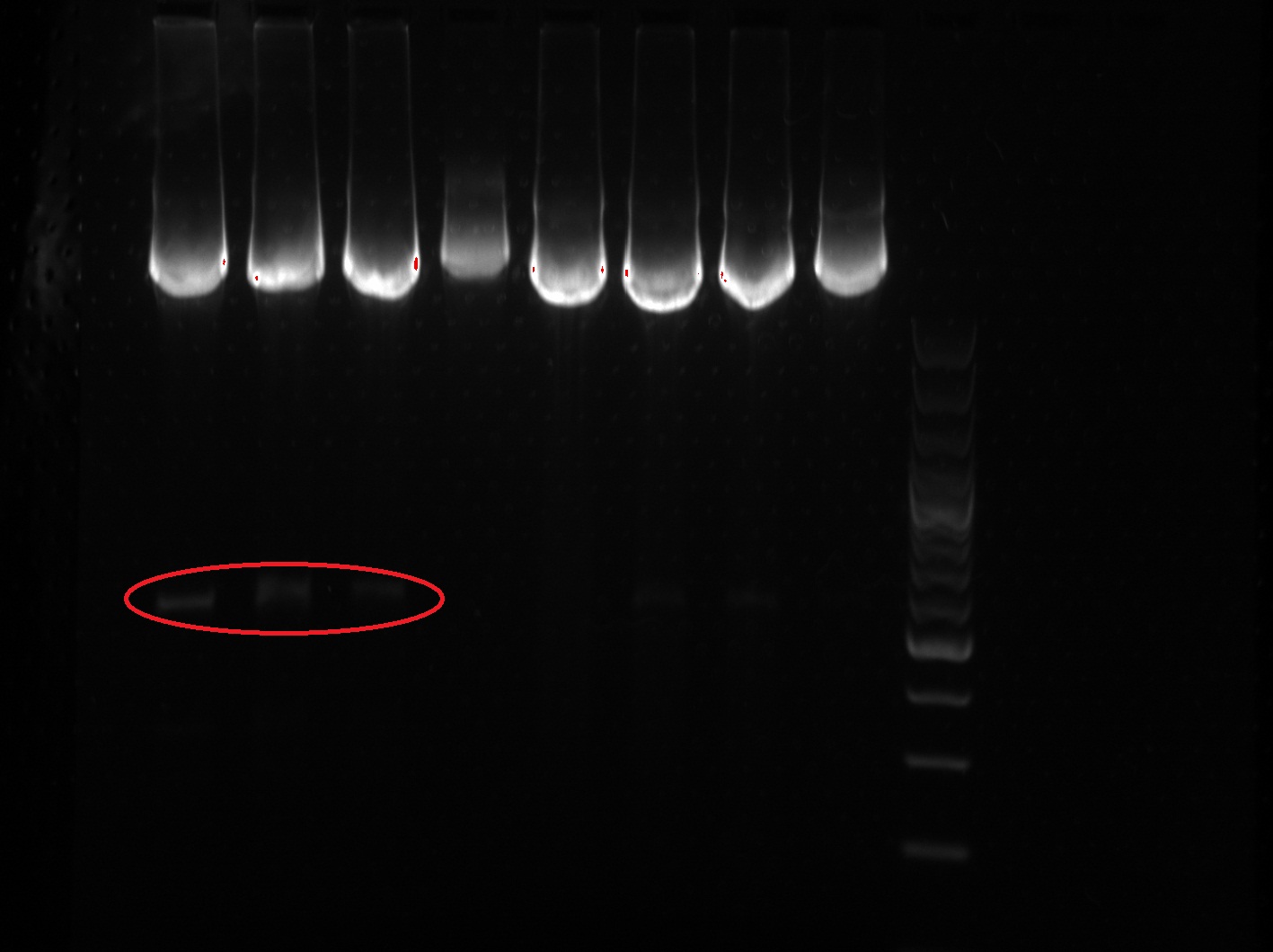 用Omega的试剂盒小量提取质粒,一次提取了8管,跑电泳的时候发现在600bp和300-400bp之间出现杂带,难道是一次提取太多导致solution II作用时间太长引起的?另外有的泳道中没有这两条带,不知道是什么原因? |