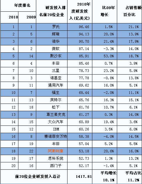 全球研发投入最多的1000家公司,排名前5中有四家是制药企业!!!! 已有24人参与