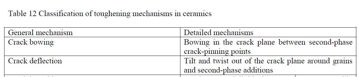 菜鸟新人求助 陶瓷增韧中 crack bowing 和 crack deflection分别指的是神马啊?有何区别?crack tip shielding by process zone activity又是神马东东。。 万分感谢! |