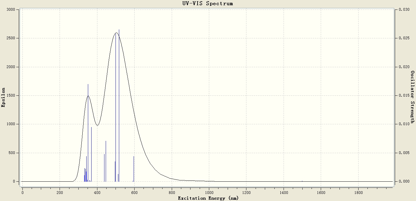 | 我现在计算的是荧光光谱,想问一下能不能用gauview模拟出光谱的谱线来,就像实验能够得出来的那样,谢谢 |