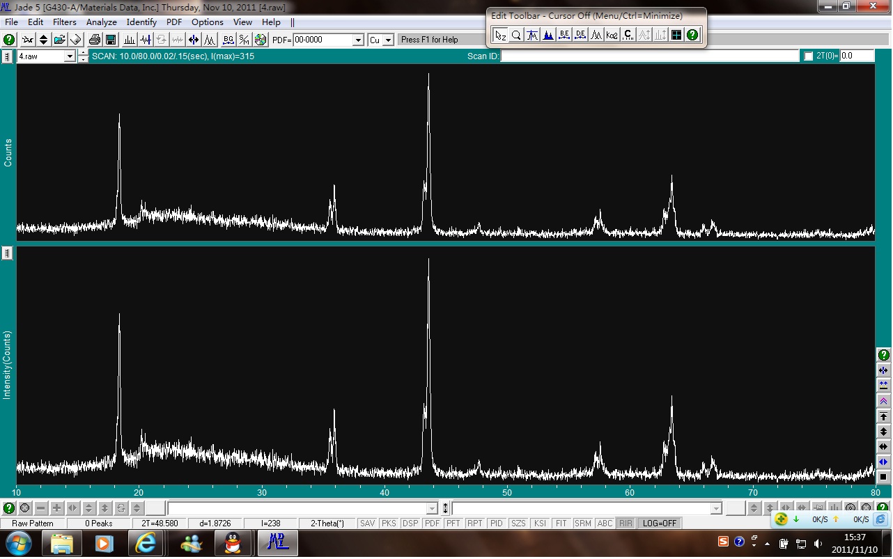 水热的东西没做过,不过从XRD里看出,原图里这个背景还是很重的,而且貌似有点点的非晶相的弥散峰······处理了看下确实钛酸锂不多,更多的是锂钛氧的其他配比的化合物~~~~~~所以个人建议楼主一个是水热温度稍微再高点,再就是煅烧的温度和保温时间可以适当的再提高和延长下~~~~~~另外控制水热前驱体的配比就好了~~~~~~ 直接读取的XRD 处理分析结果 |
