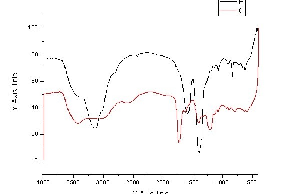 做了两个样品的测试,一个是柠檬酸(买的药品),图中红色线;一个是用柠檬酸络合硝酸镧和硝酸锰制得的锰酸镧,中间加过氨水,图中黑色线。 问:络合后制的干凝胶中,含有的羧基(—COOH)和叔醇(—OH)哪个官能团多? 具体的数据已经传上来了。对红外不是很了解,望高手指点。谢谢 红色是柠檬酸 |