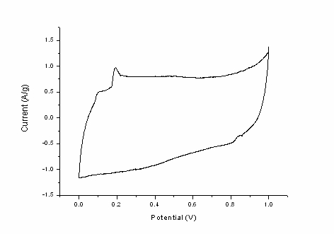 使用活性碳作电容器的电极材料。三电极体系,对电极是Pt,电解液H2SO4。 在正向扫描的过程中总是有一个峰大约在0.2V。随之扫描速度的增加,这个峰变宽并且向正向移动。去掉工作电极,扫描没有这个峰,不应该是器件的问题。 有文献提到碳电极表面有活性基团会在0.4V左右出现峰,但是跟CV曲线的峰对不上。 请问这个峰什么原因造成的?谢谢。 |