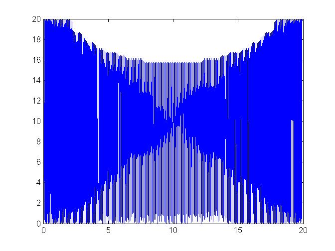 您好,谢谢您的回复。这个程序并没有考虑第三行的温度,且最大温度对我之后的分析和模型没有什么大作用。 第一个程序想在众多x,y数据中,找到在特定x(也是针对于第一行的数据)下的最大y值。第一个for语句确定了当前的D(1,j)列,嵌入式的for用于查找与上一级的x相同时对应的列,如果相同的话,然后在对其y进行比较,并保留较大值。由于两个for语句都是对j进行了,所以在第二个for之前对第一级的列数j进行保留(赋值给一个新的参数),并在第二级for语句之后,进行返回(将新参数的保留的j值再给回给j)。但程序也有很严重的问题,还望指点,谢谢。 第二个程序希望在dx子区域求y最大值。将总的的x区域0~20划分为很多子区域,每个子区域的宽度为dx。如果令参数x3=0(用于确定范围),ym=0(用于找到最大y值), 需要在D数据的D(1,j)进行遍取(所以用来一个for语句), 并判断D(1,j)是否在x3~x3+dx间,如果在,且ym小于D(2,j)的话,则将D(2,j)的值赋给ym,这样ym就保留最值点。同时由于每次就进行了一个字区域判断,所以有一个while语句,使得所有的子区域dx构成了总的x区域(0~20)。但我的那个程序有些问题,一直都没有找出来。还望帮忙看一下,谢谢。 |