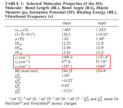 如下图红色框起的振动部分,v1,v2,v3表示什么意思?谐振近似计算出振动与试验比较,实验数据是红外振动数据吗?这篇文献参考的是baker的1942年的文章。有什么数据库可以查到简单小分子的振动实验数据?看文献计算频率结果有精确到0.1的,本来误差就在十位上,不知道精确到小数点后一位有什么意义。 找到了些资料: 非线性三原子分子三种振动模式 以非线性三原子分子为例,它的简正振动方式只有三种。在v1和v3振动中,只是化学键的伸长和缩短,称为伸缩振动,而v2的振动方式改变了分子中化学键间的夹角称为变角振动,它们是分子振动的主要方式。分子振动的能量与红外射线的光量子能量正好对应。(http://baike.baidu.com/view/139957.htm) [ Last edited by cenwanglai on 2011-11-11 at 13:00 ] |