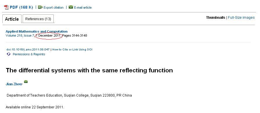 我们学校没有购买什么有用的数据库,查文献常用的就是google,但是搜到的文献怎样才知到是否是SCI呢?比如这个http://www.sciencedirect.com/sci ... i/S0096300311010873 请问它是不是SCI呢? |