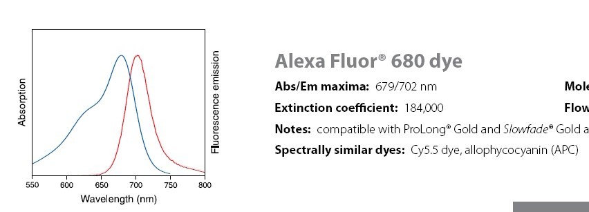 如题,求一个染料的结构式。 小弟最近用Alexa Fluor 680做实验,但是不知道结构,希望有哪位大侠知道这个染料的结构式的指教指教,多谢多谢! 希望大家搞个图片贴上来,或者给个链接网址,谢谢大家! 附件是它的吸收与发射光谱。 [ Last edited by yuanzhiqin.119 on 2011-11-12 at 22:18 ] |