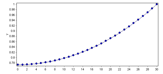 solinit = bvpinit(linspace(0,14,10),[1;0]); sol=bvp4c(@ODEfun,@BCfun,solinit); x = linspace(0,14,127); y = deval(sol,x); plot(x,y(2, )function dydx=ODEfun(x,y) a=pi*14.701^4/64; b=pi*(24^4-14.701^4)/64; c=3.54365802196686; d=5.94058826800217; e=2/14.701/pi; f=14.701/2; dydx(1,1)=y(2); dydx(2,1)=(1/a+1/b)/(c+d)*f^2/e*(cos(x/(f*e)))^2*y(1)-(tan(x/(f*e)))/f/e*y(2); function res=BCfun(ya,yb) res=[ya(1); yb(1)-1]; 哪位大神给看看我这个微分方程的数值解是多少。用bvp4c解出来的总感觉不对 |