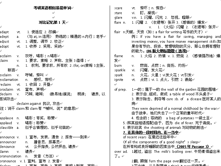 考研英语相似易混淆的单词对比记忆。辛辛苦苦在网上淘来的!!!想下的抓紧啦!