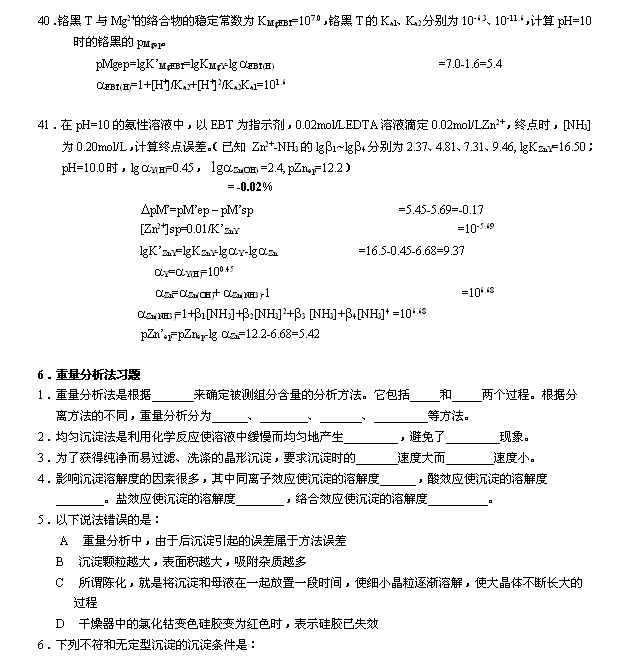 【习题资源】分析化学习题(湖大)