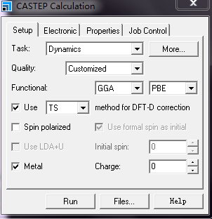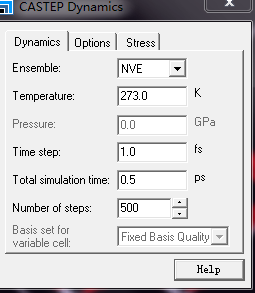 使用Castep做MD,每一个step都是在进行一个基于QM的单点计算,现在这样的设置相当于500步Castep的单点,显然会非常耗时。 这样的MD计算是Ab initio Molecular Dynamics,其中具体的原理可以参考http://www.theochem.ruhr-uni-bochum.de/research/marx/marx.pdf。 如果对精度没有特别的需求,使用Dmol3模块可以大幅度的提高你的计算速度。 |