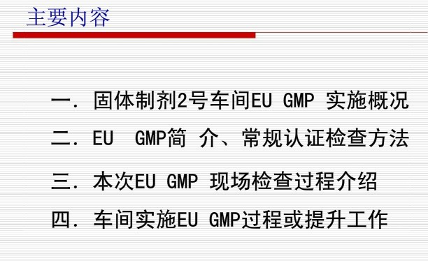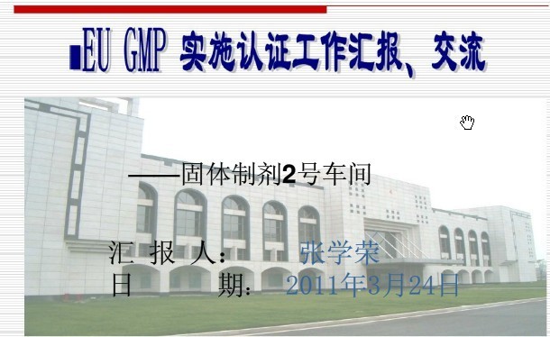 EU GMP实施认证工作汇报、交流--扬子江张学荣2011.3.24