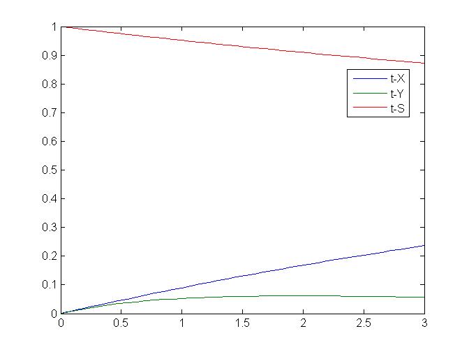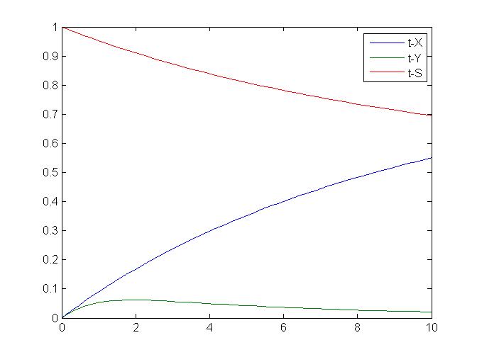 求解微分方程。 急! 当t=0时,X=0,Y=0,S=1 dX/dt=[4.36S(1-X)-1.61XY]/(5.8X+1.8Y+15.2S+29.8) dY/dt=dX/dt-2.26Y/(Y+2S) 2dS/dt=-dX/dt-0.012S/(Y+2S)[ Last edited by dbb627 on 2011-11-16 at 16:00 ] |