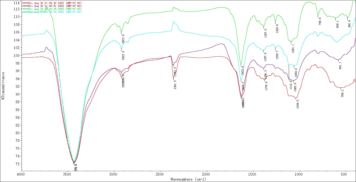 红外曲线上在2362cm-1附近有峰,代表什么基团呢,而且有两条曲线在此处的峰向上是怎么回事?另外其它的峰都代表什么基团,麻烦也告知下,谢谢啦。