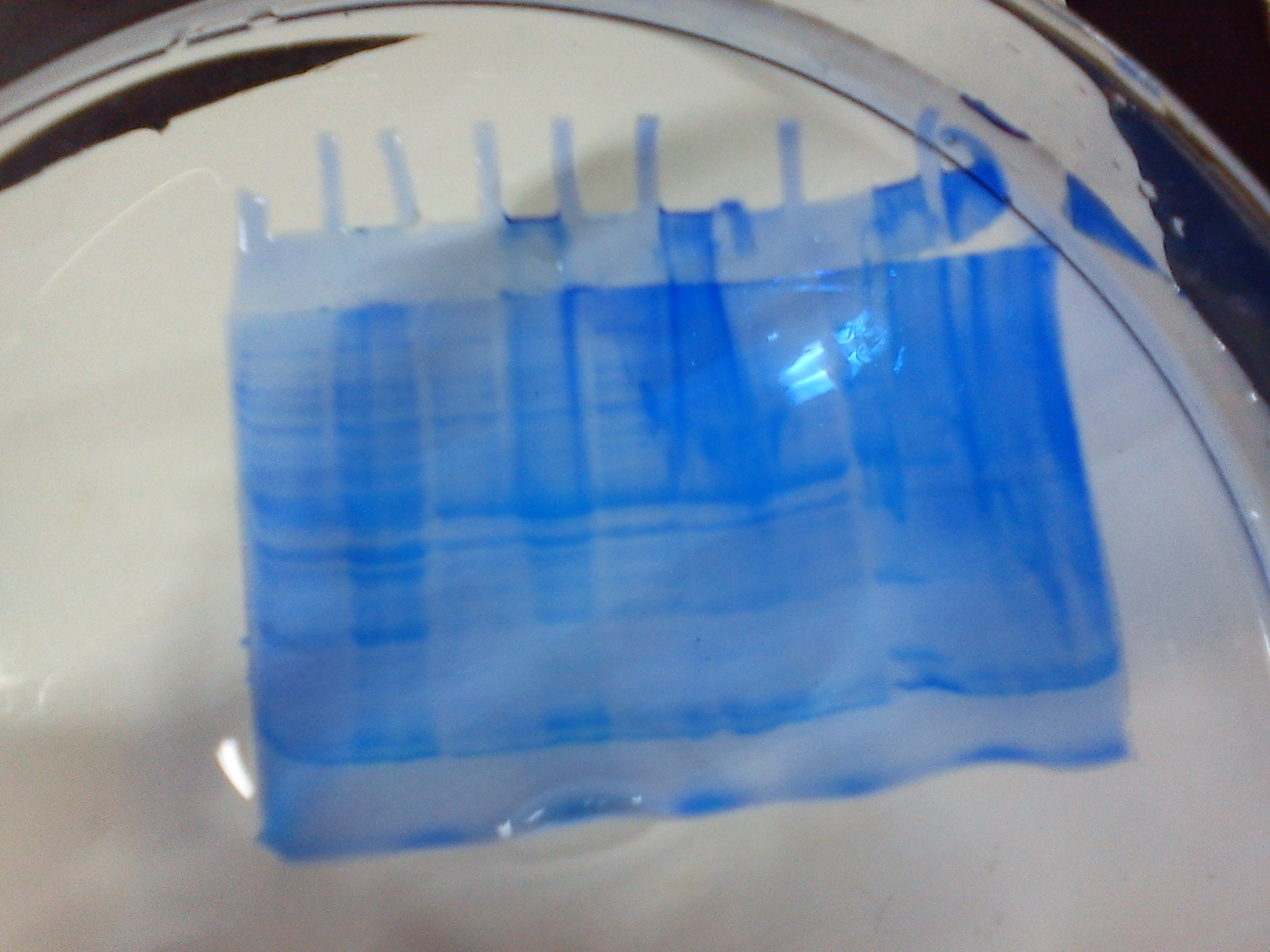 请大家帮忙分析下我的SDS-PAGE蛋白检测胶啊