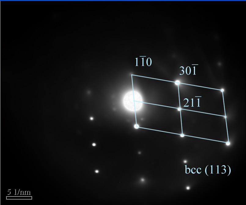 这是钢中打的一个衍射,但刚接触衍射,没标定出来 急着要数据,求高手帮看看是啥相