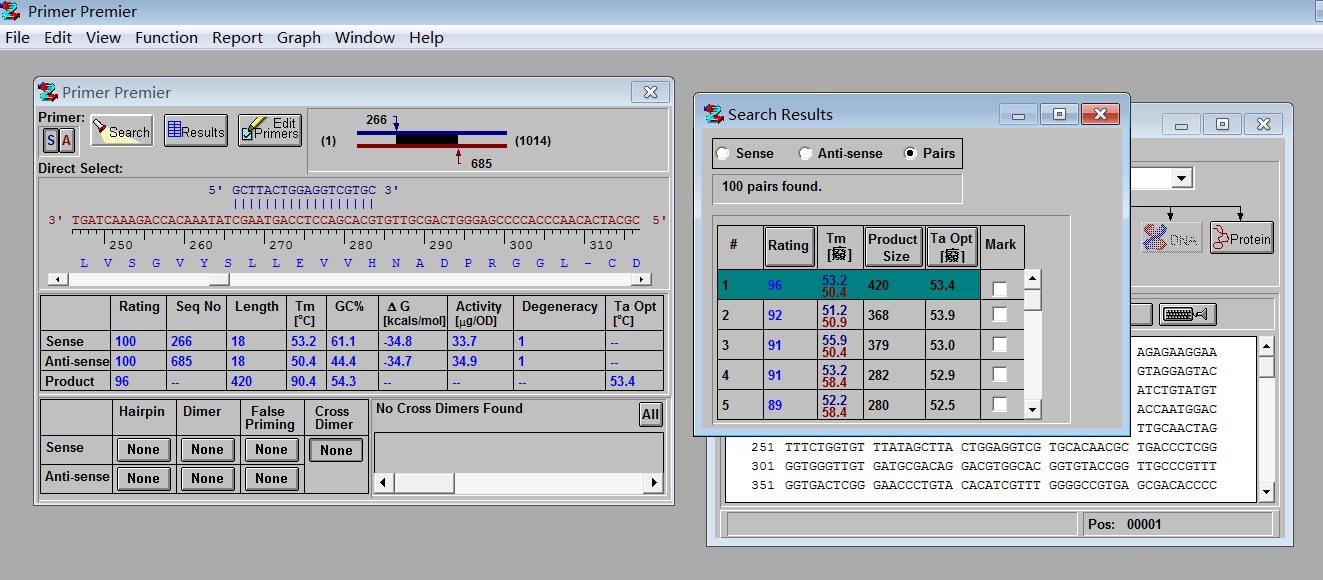 如图已经用Primer 5获得search result, 下面如何获得1对或2对较好的引物序列呢?下面如何操作?