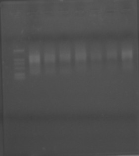 细菌RNA提取后跑电泳出现一条暗带和在泳道中弥散都是什么原因?
