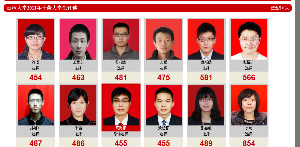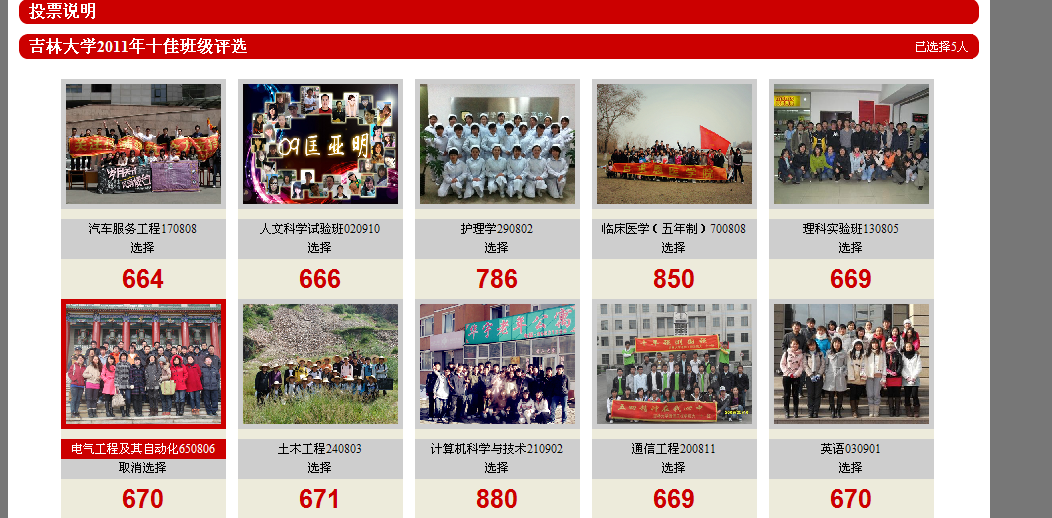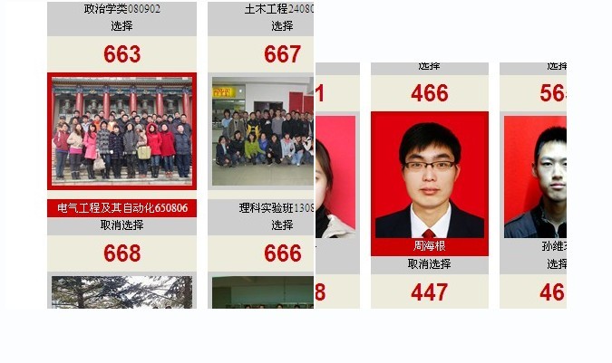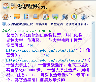 帮偶的表弟和他的班级拉拉票,拜托您啦! 吉林大学十佳班级,十佳大学生网上投票 : 投票网址:<http://xsc.jlu.edu.cn/vote/cla/>(十佳班级); <http://xsc.jlu.edu.cn/vote/student/>(十佳大学生); 十佳班级选择:电气工程及其自动化650806班; 十佳大学生选择:周海根; 注意: 1、 每次限选最低5个,最高10个,其它选票给目前票数最少的 2、 最好用google浏览器,或者火狐浏览器(JLU Firefox) 3、 每个IP一个小时可投一次,投票期间,可多次投票,持续给力啊! 4、 投票时间在11月25日--12月2日;请您尽可能多的转载此条信息,并时时刷新 每次投票传上截图回复帖子(不要用快速回复,因为不能上图),一次投票给3金币,如果转发到其它群里,回复帖子上截图需要有群名称的图片,一次奖励七个金币。纯水的表情没有奖励哦。超过十个金币不能放松的~我的金币也来之不易,拜托大家帮帮忙哈,以前没有帮表弟什么忙,姐姐做的不称职,所以这次拉票就靠大家喽~多谢啦~ 投票就是投给我图片中带圈的那个 [ 来自科研家族 纳米技术 ] http://blog.renren.com/blog/235440838/782413775 这个是人人网上的帖子的相同链接,希望分享哈~人人分享,在日志留言~附上小木虫iD可以得到十金币哈~金币散尽为止~ [ Last edited by sxt881209 on 2011-11-26 at 17:56 ] |