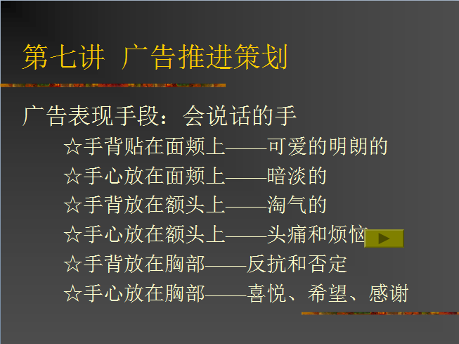 本内容由用户自主发布,如果其内容涉及到知识产权问题,其责任在于用户本人,如对版权有异议,请联系邮箱:xiaomuchong@tal.com - 附件 1 : 上海交大MBA课程——广告策划.ppt