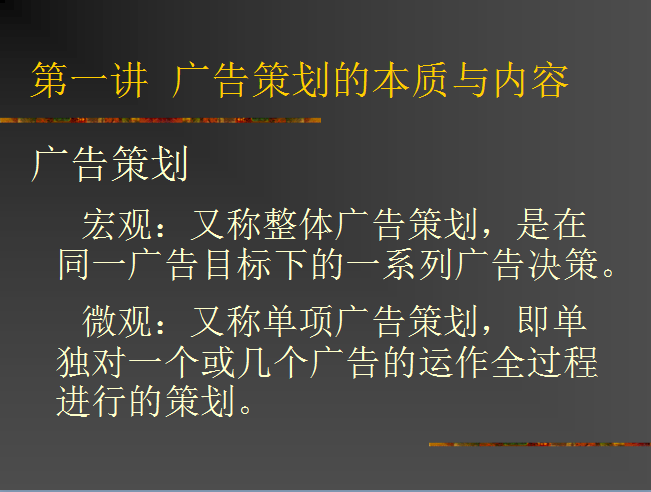 什么广告是好广告?影响受众的行为,使之朝广告发布人所期望的方向发展。 广告的本质是什么?受众认知的引导。通过系列的心理认知过程,达致受众行为的产生(强调广告的心理过程)。 -------------------上海交通大学安泰管理学院黄丹老师 课件上传分享,希望有用的请支持下载。记得回帖,这是美德。 [ 来自科研家族 梦家园 ] [ Last edited by shaojiyeah on 2011-11-27 at 12:15 ] |