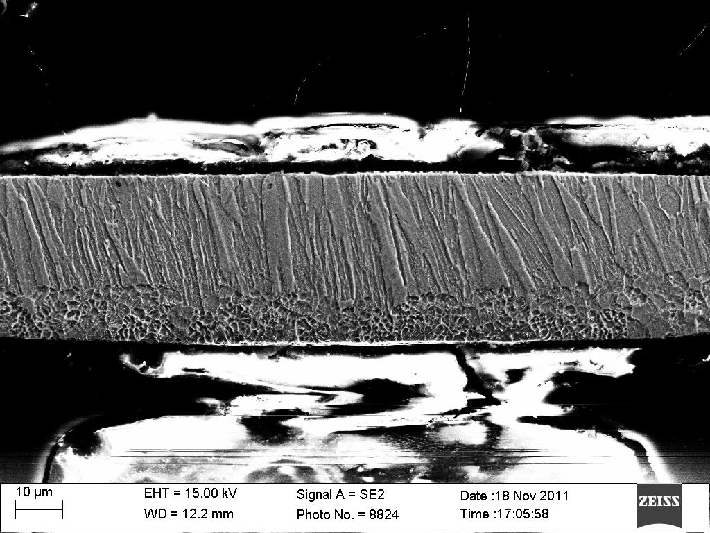急求,谁能帮我区分或者描述一下快淬甩带自由面和贴辊面怎么区分吗?多谢多谢!!!! 我现在资讯了一些人,他们有的说是通过亮度来区分,有的说是通过粗糙度来区分,还有的说是通过冷隔纹来区分,我实在是搞晕了 我描述一下我的带吧,A面有比较明显的沿着带的纹路,比较亮一些。B面摸着好像平一些,亮度稍暗,仔细看能看到上面有一些小沟壑。 所以,大家帮我区别一下哪面是自由面,哪面是贴辊面。虽然是个小问题,但是很重要。 或者麻烦各位描述一下贴辊面和自由面都是什么样子的? 这里有上次做的SEM的图 http://muchong.com/bbs/viewthread.php?tid=3822513 再补一张 截面 |