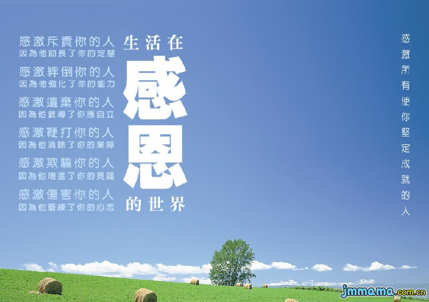 | Indeed if there are no the people and matter around us we may not live as today.So respect with each other is necessary.But some opinions on the last picture are bewildering,just like a slogan.It tells us that you must appreciate who throws over you,who cheats you and who hurts you.If you have succeeded now you may appreciate them indifferently.I want to ask "if you fail or you are unable to recover after a set-back due to them,would you give a thanks ? Holding a gratful heart is very correct.Big words left behind,Action first! |