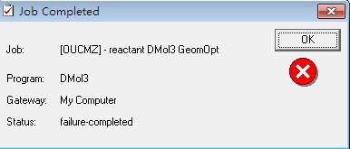 运行DMol Calculation后,出现一个对话框提示the job has failed.选择YES后,出现以下提示(见图片) failure completed ,请问问题出现在哪里。谢谢 是不是licence错了,求一个正确的licence... [ Last edited by premonkey on 2011-11-29 at 11:16 ] |