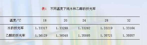 一般地讲,当温度增高1℃时液体有机化合物的折光率就减少3.5×10-4~5.5×10-4,某些有机物,持别是测定折光率时的温度与其沸点相近时,其温度系数可达7×10-4。为了便于计算,一般采用4×10-4为其温度变化系数。这个粗略计算,当然会带来误差,为了精确起见,一般折光仪应配有恒温装置。表1是不同温度下纯水和乙醇的折光率。 表1 不同温度下纯水和乙醇的折光率 温度/℃ 18 20 24 28 32 水的折光率 1.33317 1.33299 1.33262 1.33219 1.33164 乙醇的折光率 1.36129 1.36048 1.35885 1.35721 1.35557 |