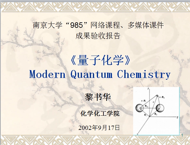 本内容由用户自主发布,如果其内容涉及到知识产权问题,其责任在于用户本人,如对版权有异议,请联系邮箱:xiaomuchong@tal.com - 附件 1 : 南京大学量子化学.rar