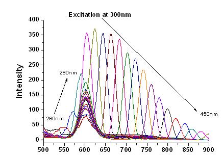同一样品在不同激发光下,激发光二倍波长的地方都会有这样一个半频峰,但这半频峰的强度甚是诡异。