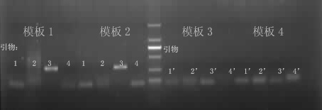 你目的扩增条带如果是小于100bp的那条的话,模板1和2的3泳道出现的条带应该来自基因组的污染。